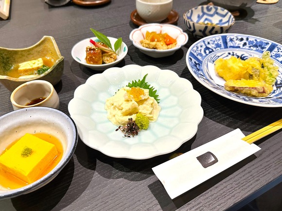 クラス役員のランチ会。今回は豆腐懐石。おぼろ豆腐にはじまって、お湯葉、ミニ田楽に天ぷら、生麩に煮つけ…とおいしい玉手箱の様なラインナップ。こ···