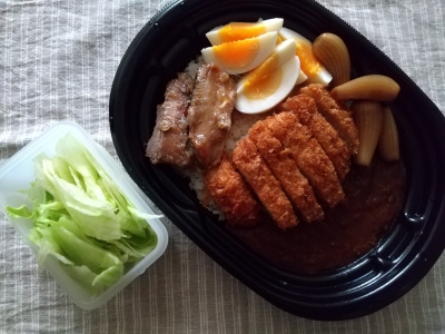 ・盛りすぎチャレンジカツカレー ・トッピング (味玉、自家製らっきょう漬け、身欠き鰊の煮物) ・レタスのサラダ 昨日の仕事帰りにLA···