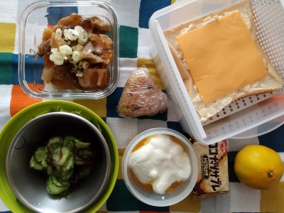 ・玉ねぎマヨチーズトースト ・牛すじ煮込み (具:牛すじ、大根、コンニャク、蓮根、ニンニク、薬味の長ネギ) ・チョレギサラダ ・ふのりとキ···