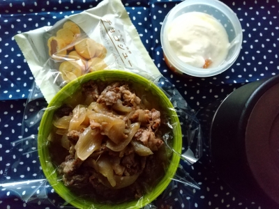 ・牛丼 ・お吸い物 (具:生牡蠣、小松菜、ネギ、生姜) ・ヨーグルト+熟しすぎた柿 ・頂き物チョコシュー 休み中のことも報告できれ···