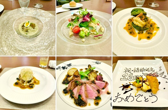 結婚記念日のごはん。夫婦二人で水入らず、ではなくて、しっかり息子も参加で。そして誰よりもよく食べておった・・・。左上から・秋茄子のジュレとズ···