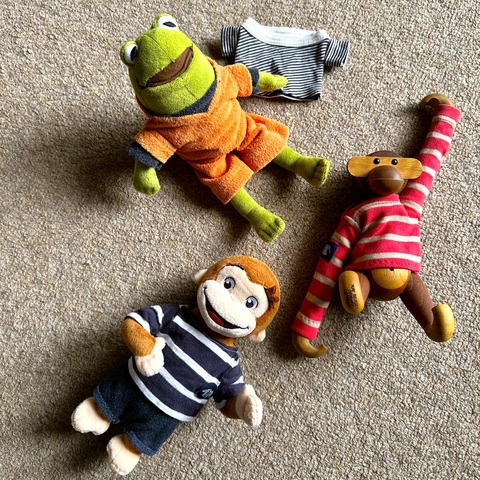 子どものお洋服をぬいぐるみ用に作り替え。衣替えの時期に気紛れでやる手芸です。ガサツな子なので中々に洋服は傷んでるのだけど、贈り物でいただいた···